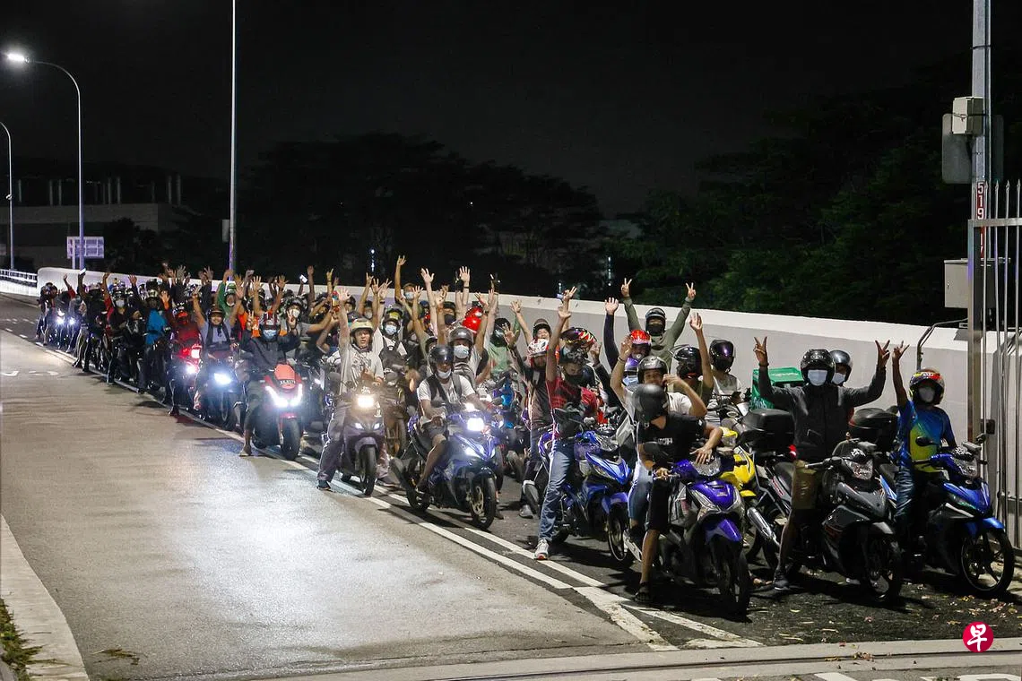新马一衣带水,许多家庭却因疫情而分隔两地。对于滞留本地的马国儿女来说,新马在今年4月1日通关绝对是大件事。许多电单车骑士在前一晚已迫不及待地在兀兰关卡等候午夜12点的到来。(李健玮摄)