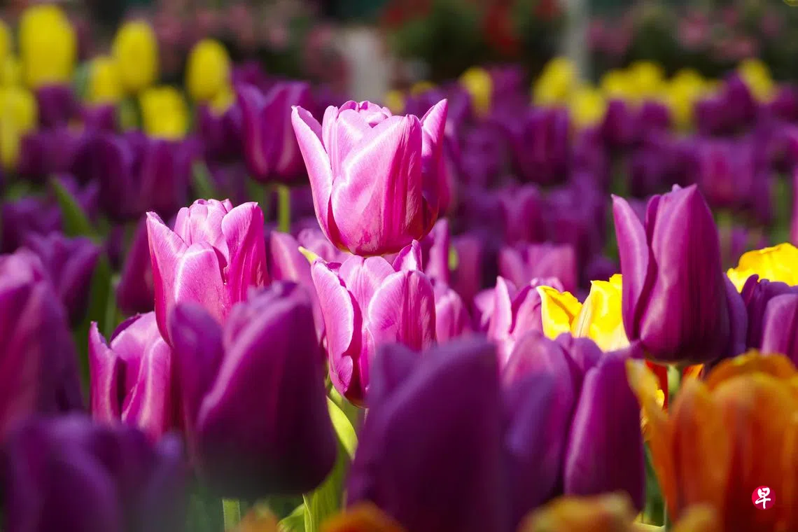 滨海湾花园一年一度的梦幻郁金香展,于4月17日举行至5月12日,公众可在滨海湾花园花穹,观赏到超过六万株郁金香。