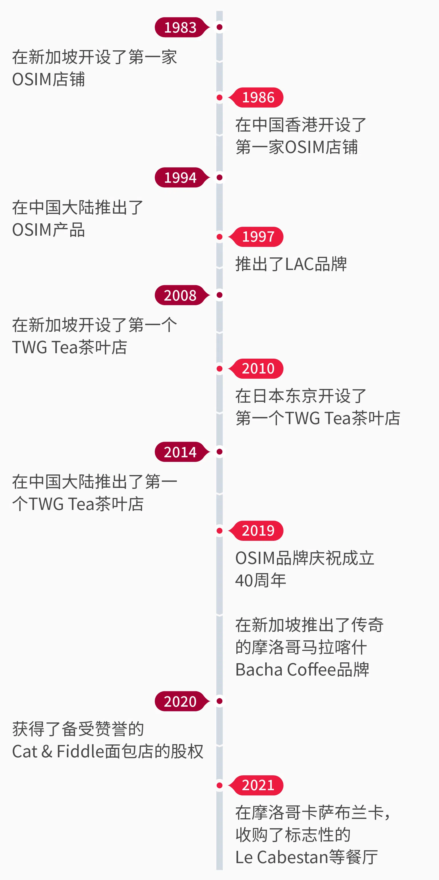 V3旗下有着家喻户晓的保健器材OSIM、健康营养品LAC、美食家钟爱的TWG Tea、Bacha Coffee、最新收纳的Le Cabestan摩洛哥餐厅,以及商店设备制造商Futuristic Fixtures等。