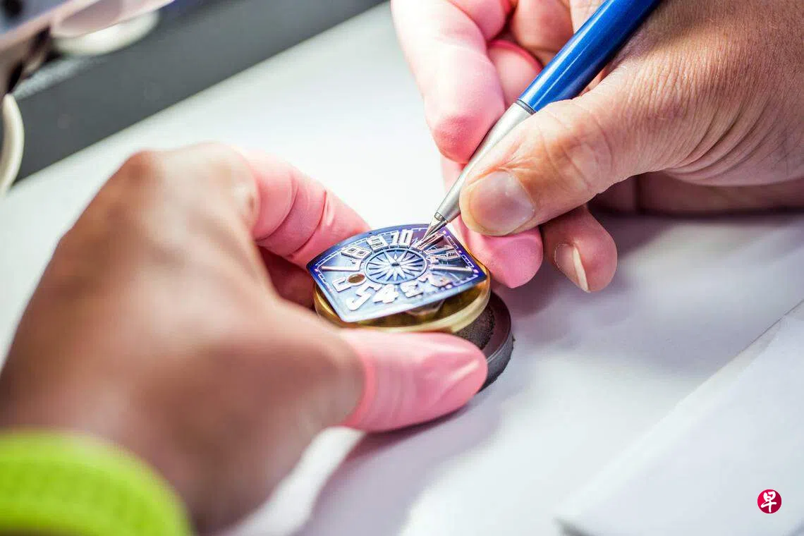 为展现对技艺的追求,法穆兰的表盘喷漆室,将外科手术常用的灭菌法应用于制表过程,喷漆周期由20道工序组成,每道工序须间隔40分钟,然后在特殊烤箱中以300摄氏度烘烤一个半小时,每一步都要很小心以避免任何损坏,尤其是表盘的弧形部分。这是对质量的最高考验,技术和创新都来自于对每一个步骤的完美掌握。