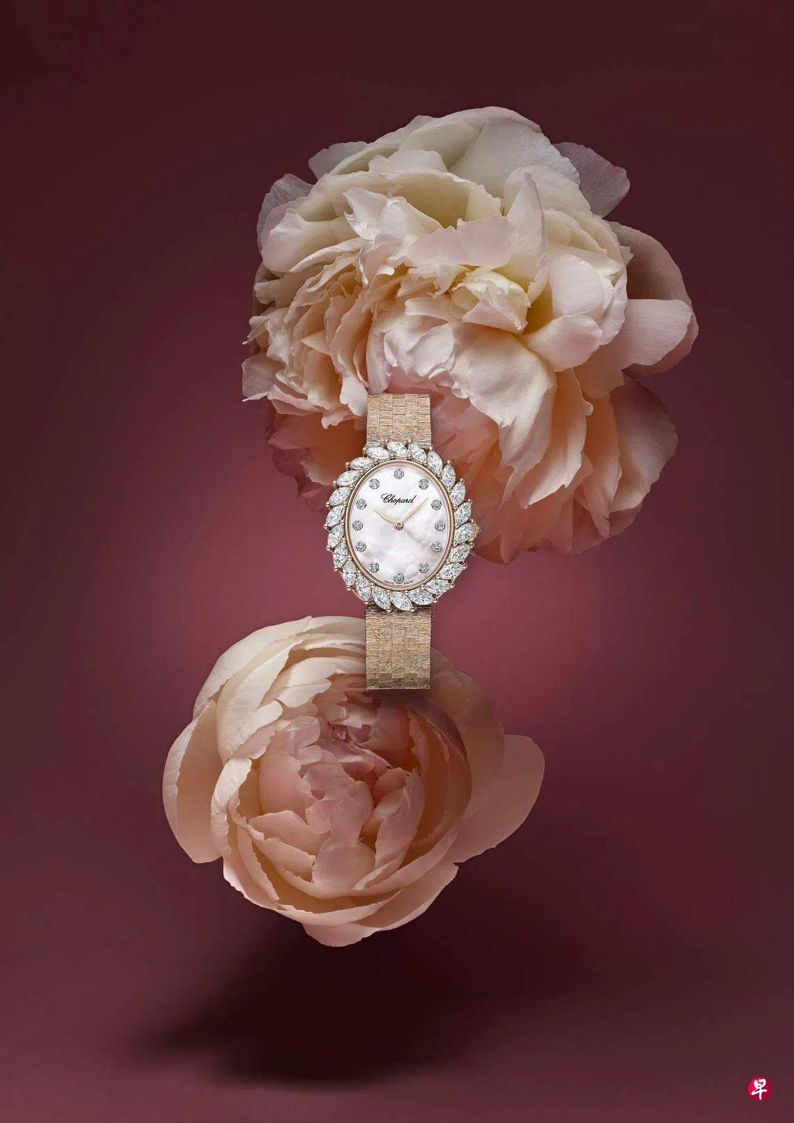 珠宝腕表是掌舵萧邦品牌发展的舍费尔家族的专长。L’Heure du Diamant系列作品特点在于运用标志性爪镶工艺,令璀璨钻石尽显流光溢彩,彰显钻石纯净度。全新推出的椭圆形腕表,以白金或玫瑰色18K金打造,饰有珍珠母贝表盘,四周铺镶榄尖形切割钻石,并配备标志性“树皮”纹理金质表链,搭载09.01-C自动上链机芯,有42小时动力储备。同系列搭配一对耳环和一枚吊坠,突显腕表美学与珠宝艺术的完美结合。