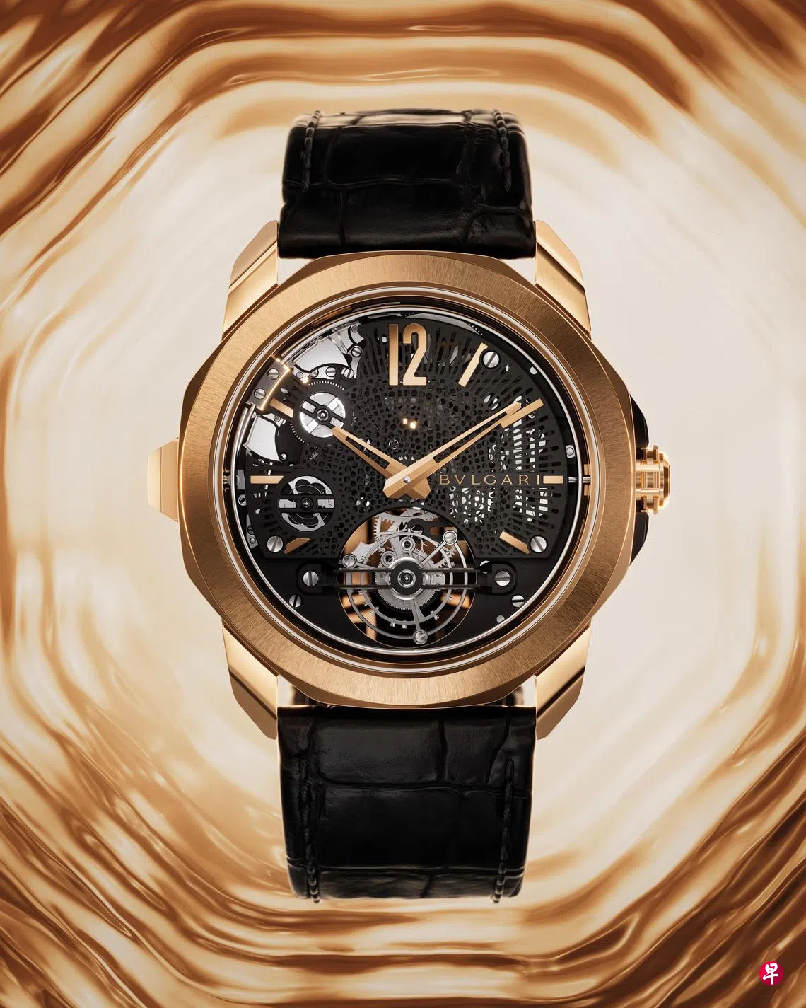 Octo Roma钟乐三问陀飞轮腕表搭载改良版BVL 428钟乐报时机芯,可精准鸣报小时、刻钟和分钟,而且在鸣报刻钟时能发出三种音调。早在2016年,宝格丽就推出了打破品牌超薄腕表纪录的三问腕表。
