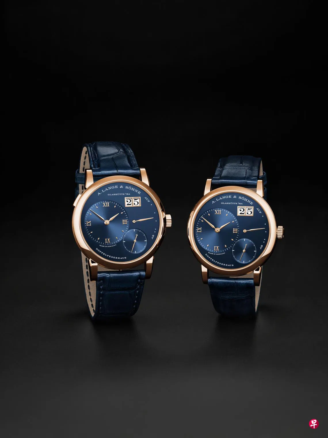 18K玫瑰金款将贵金属温暖泛红的光泽与蓝色925银质表盘相结合。四款限量版腕表均配备纤长表圈和瞩目表耳,展现明晰设计。Lange 1腕表表壳直径38.5毫米,Lange 1小型款腕表表壳直径36.8毫米。