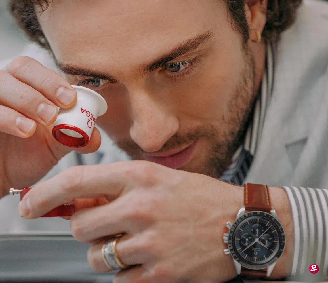 为亲身感受机械工艺的精妙与品牌历史的厚重,泰勒-约翰逊专程造访欧米茄总部及制表工坊。他佩戴的是一枚Speedmaster “First OMEGA in Space”腕表,褐色皮带衬托出古典气息,呼应其影像作品中的冒险精神。他说:“我一直对腕表抱有热情,而欧米茄承载着我的一段美好记忆。父亲曾为拥有一枚欧米茄腕表而省吃俭用,这份情感纽带延续至今。”