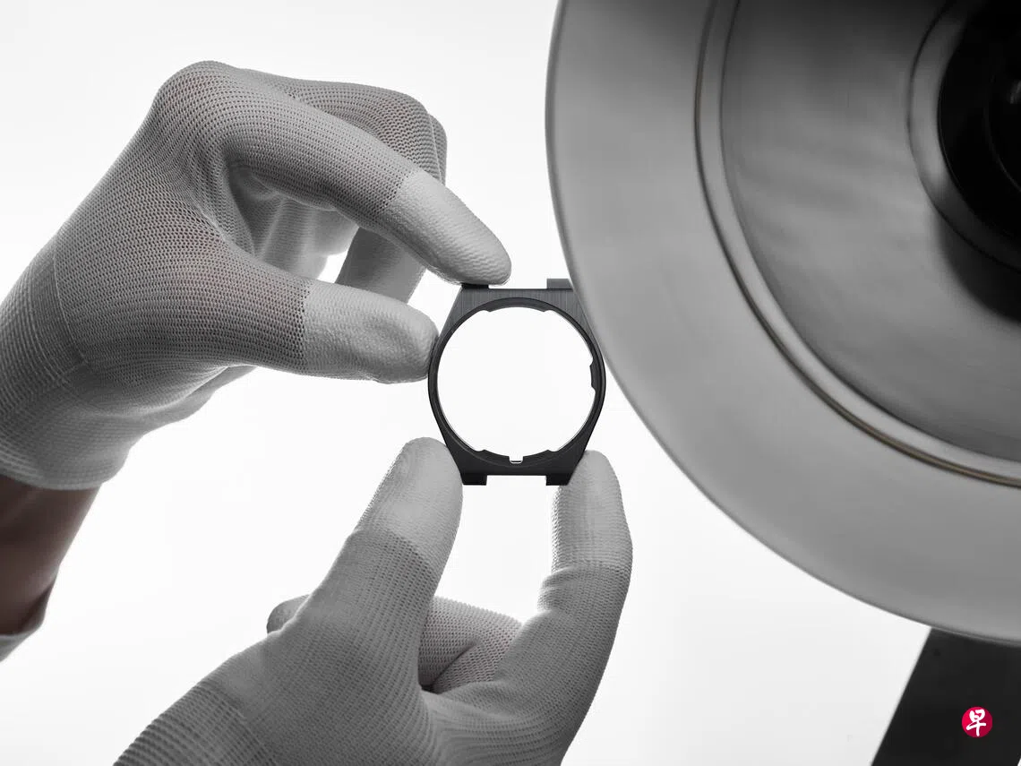 为在坚硬材质上保持经典设计的比例与纤薄轮廓,万国表采用由三个部分构成的多部件结构:表壳衬圈、表圈与底盖环均以陶瓷制成,并以功能性螺丝固定;内部嵌入钛金属环,以容纳机芯,稳固螺钉,并确保有10巴的防水性能。这一创新结构既保留了工程师系列的设计基因,又解决了陶瓷在结构完整性上的挑战。