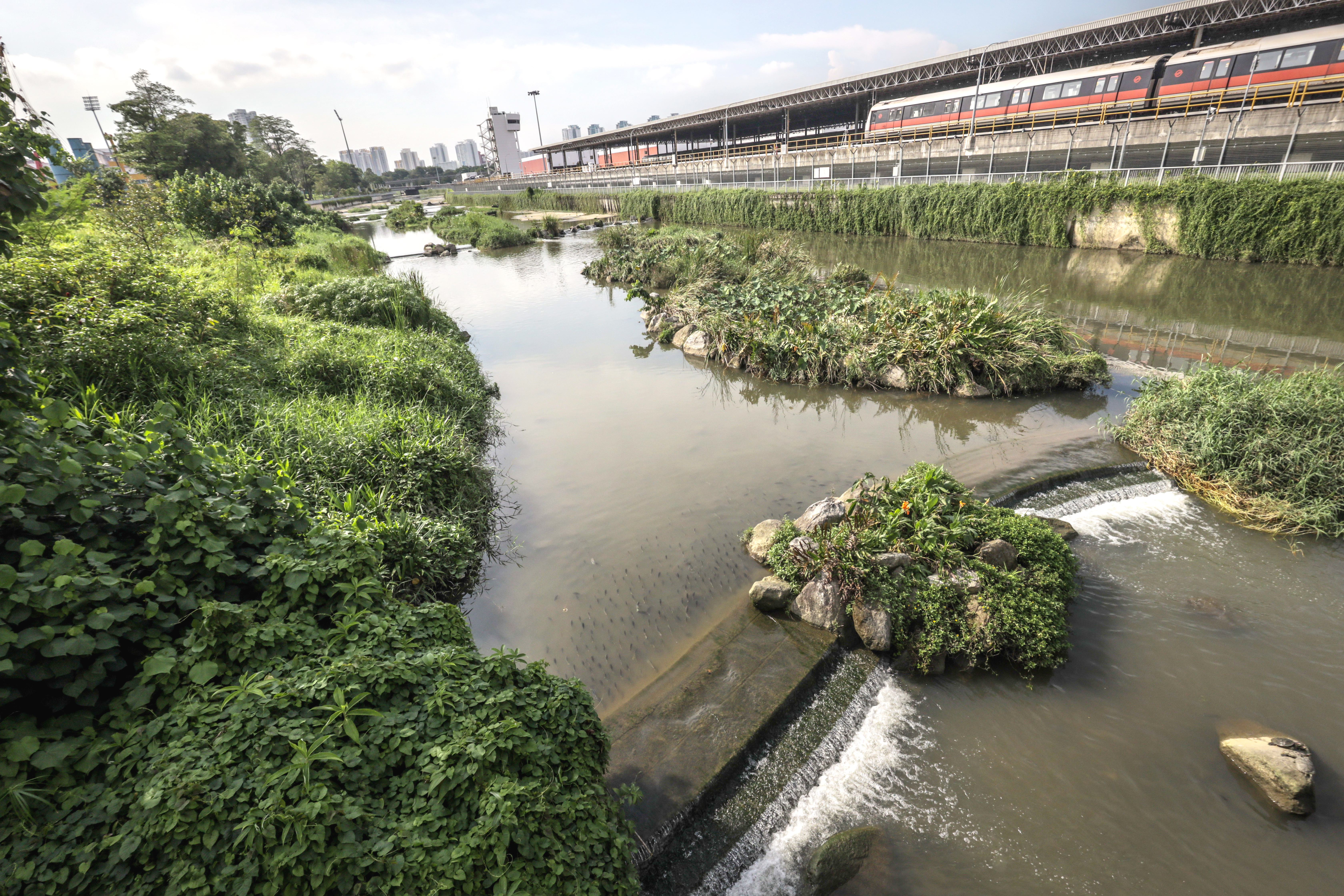 经过碧山—宏茂桥公园,进入加冷公园连道,目睹“大自然中的城市”(City in Nature)理念的神来一笔。连道与碧山地铁车厂之间的人工水道铺上绿被,中央还有园林景观,绿意盎然,流水潺潺,几乎不见人工斧迹。人类的赏心悦目是其次,重要的是它已成鱼鸟共荣的生态乐园。