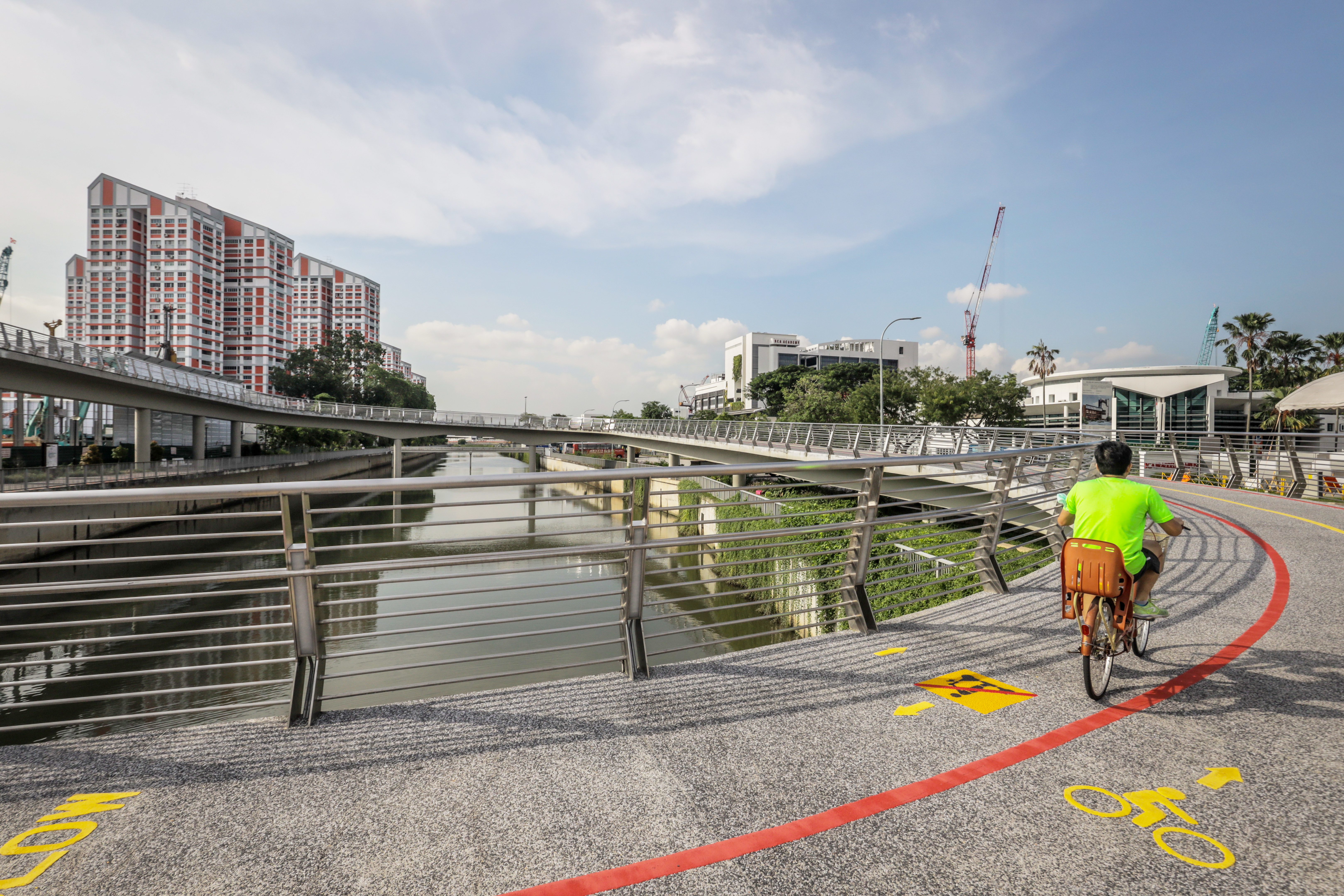 新加坡目前的脚踏车道共有近500公里,其中不少建在水道旁。为了收集每一滴水,我国的水沟全联系到蓄水池,而蓄水池都是公园,很自然地把水道连起来,水道边几乎也就是公园连道(Park Connector Network,简称PCN)。