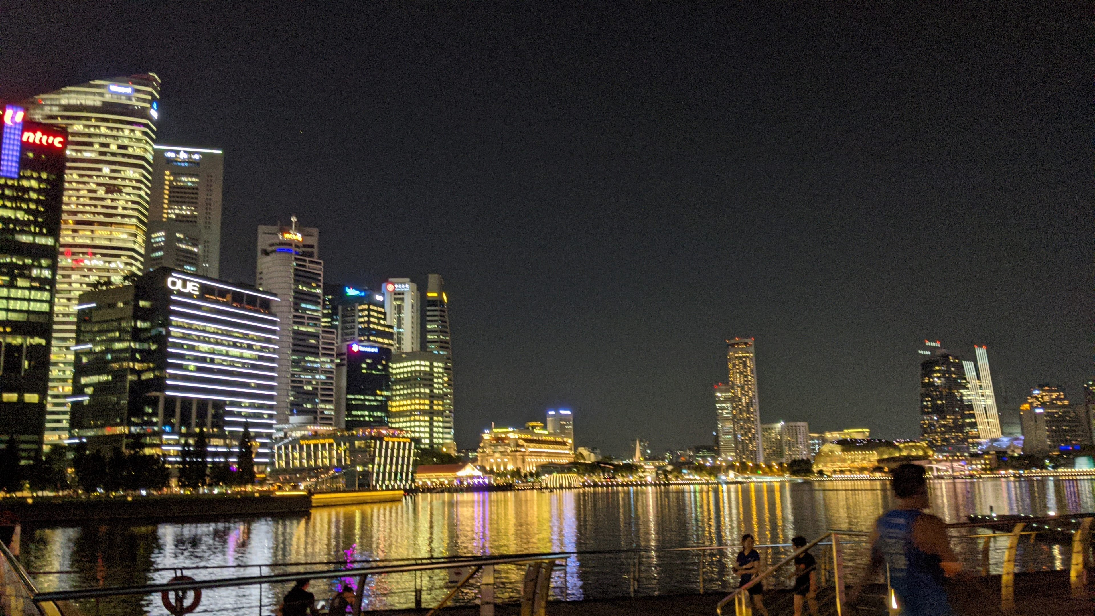 骑车时若靠近市区,我总会绕过来骑这段,因为地标美景处处。沿着滨海湾花园的花穹(Flower Dome)、云雾林(Cloud Forest)右侧前进,再拐进滨海湾金沙酒店侧边,经过新加坡艺术科学博物馆、苹果旗舰店,然后一路来到富丽敦酒店和鱼尾狮,外国游客千里迢迢来打卡的众多景点,20分钟内搞定。