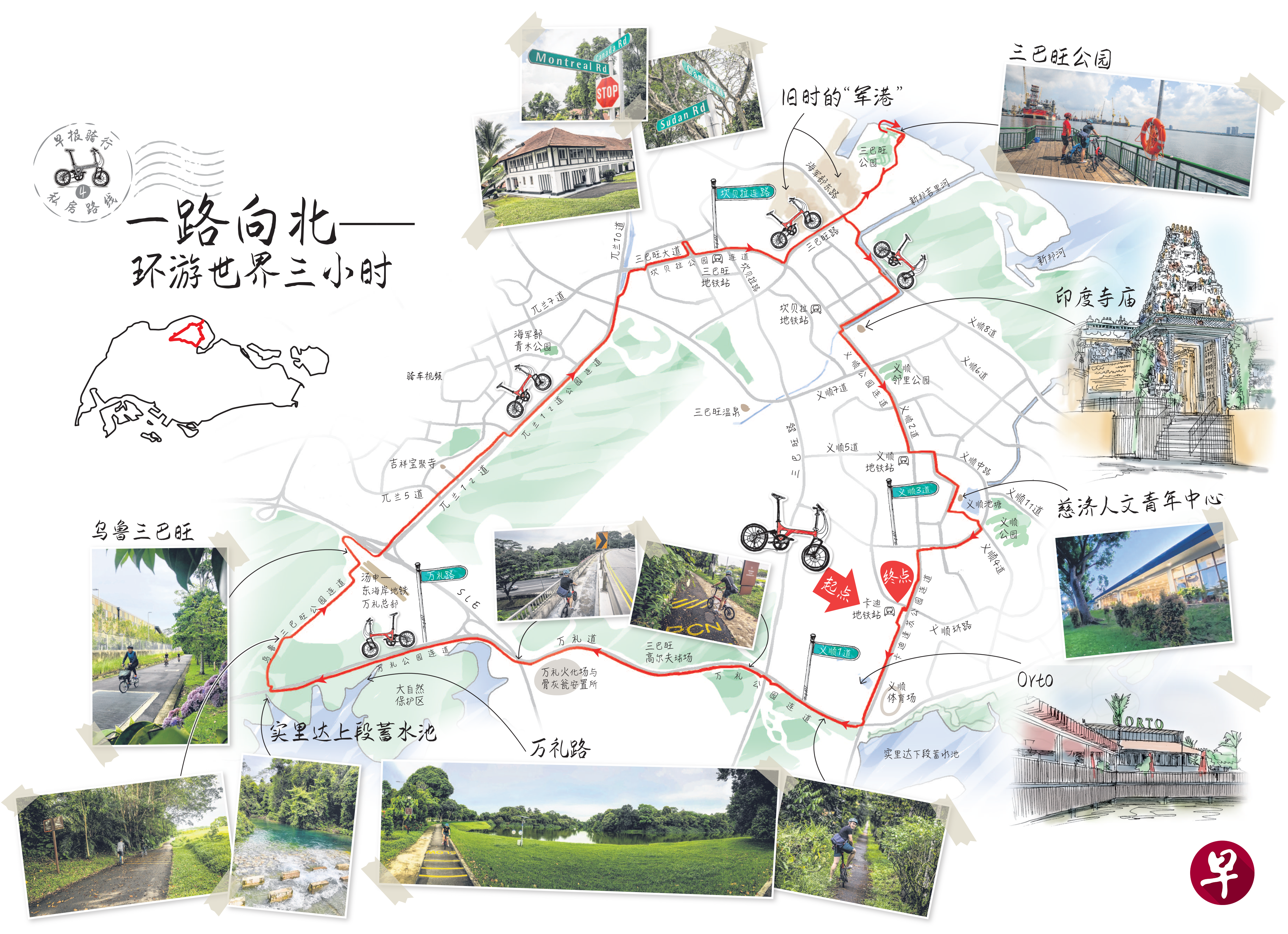《联合早报》和zaobao.sg设计的四条骑行路线已全部推出,这些私房路线反映了新加坡人文与自然风景,每条路线20至25不超过30公里,绝大部分是在公园连道或脚踏车道,不骑车的朋友,也可以按图徒步旅游。如果你已报名参加华侨银行“骑车乐”脚踏车大会(OCBC Cycle),可以根据我们的地图一面累积里数,一面重新认识新加坡。