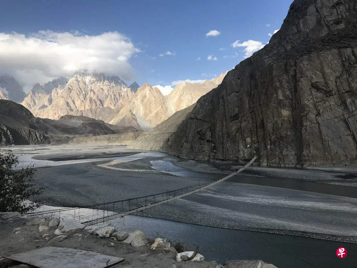 我们的旅游路线是在巴基斯坦北部由巴基斯坦控制的克什米尔山区。这里尽是高山峻岭,宁静山谷,和碧绿湖泊、河流构成的原始风光,十分巍峨壮丽。出游之前,很难想象巴基斯坦的风景有那么独特。当地时间比新加坡迟三个小时,时差的困扰不大。