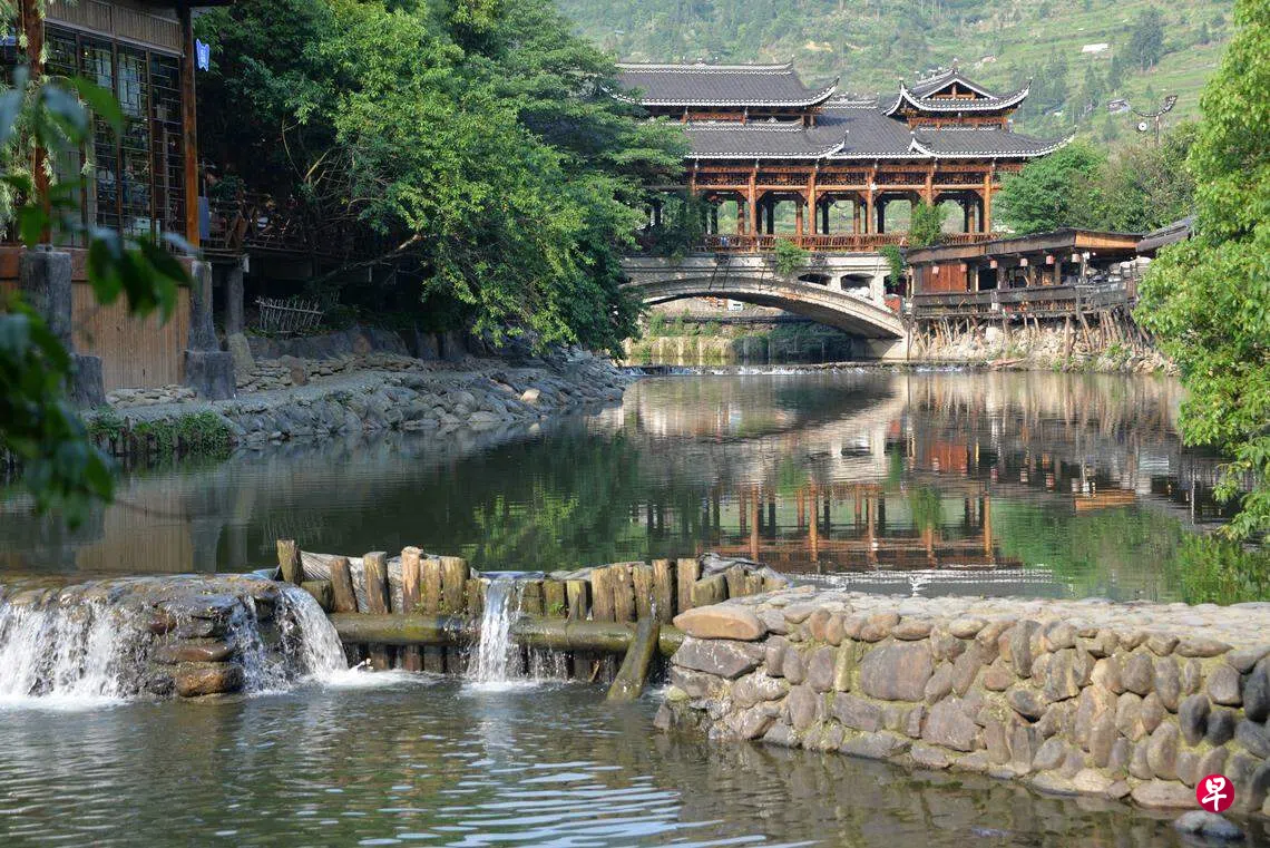 为了去看荔波樟江的古桥,从西门到东门,经过乳蓝色湖水的卧龙潭,亿万年成型的钟乳天钟石,潺潺流水的水上森林和68级跌水瀑布。小七孔是一条有七个拱孔的青石古桥,约190年历史,修碑记录40米长180公分宽,没有护栏,桥上长满杂草,听警卫说,在桥上熙熙攘攘走动的游客每天都得跌几个下河。坐船去看大七孔的天生桥,漂亮的景色看多了,视觉开始对山水有点视觉麻木,脚踝里的胫骨神经挤压多了,疼痛转为麻痹。