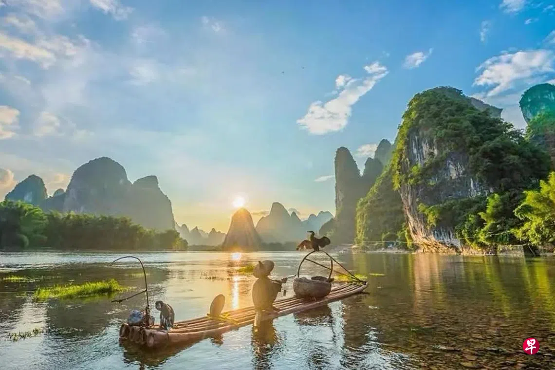 不仅如此,漓江游船还能让你体验一场与众不同的生态之旅,近距离接触漓江上独有的鱼鹰。训练有素的鱼鹰在渔民的指挥下潜入水中,凭借敏锐的视力和迅速的动作捕捉鱼儿。这种古老的渔猎方式,不仅展示了人与自然和谐共处的智慧,也让游客们能够近距离地观察和了解这一独特的渔猎文化。