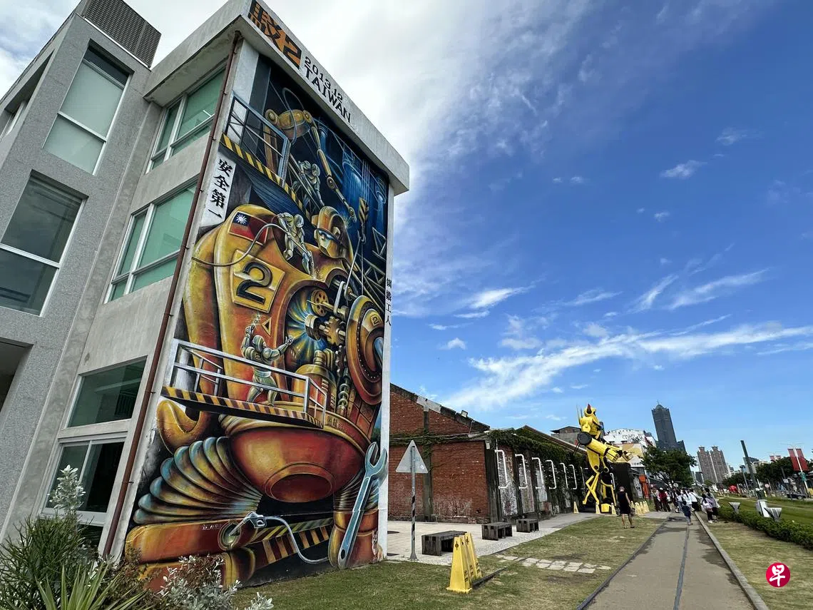 从金马宾馆向南走,位于盐埕区高雄港边的驳二艺术特区(大义街1号,https://en.pier2.org/),壁画涂鸦随处可见,人气很旺。艺文工作者2001年将港区第三船渠仓库建筑群开发成艺文地标,2006年由高雄市政府文化局接手。特区从最初的三栋仓库,逐步扩展成大勇、蓬莱、大义仓库三区共26栋仓库,走走看看,耗上半天。