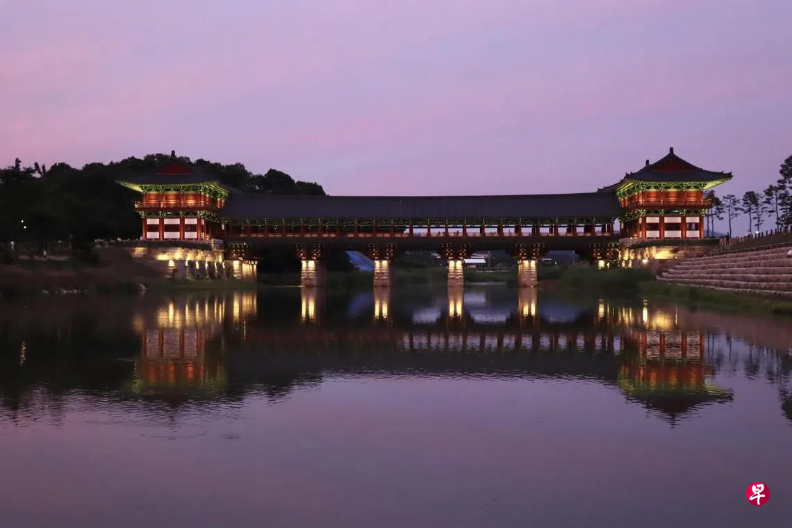 去釜山旅游的人通常会把韩国高铁(KTX)半小时就能抵达的庆州玩一遍,而到了庆州的人通常去的景点是大陵苑、佛国寺和皇理团路等,月精桥虽然就在大陵苑不远处,但去的人其实不多,会留到夜晚点灯时的人更是少之又少。