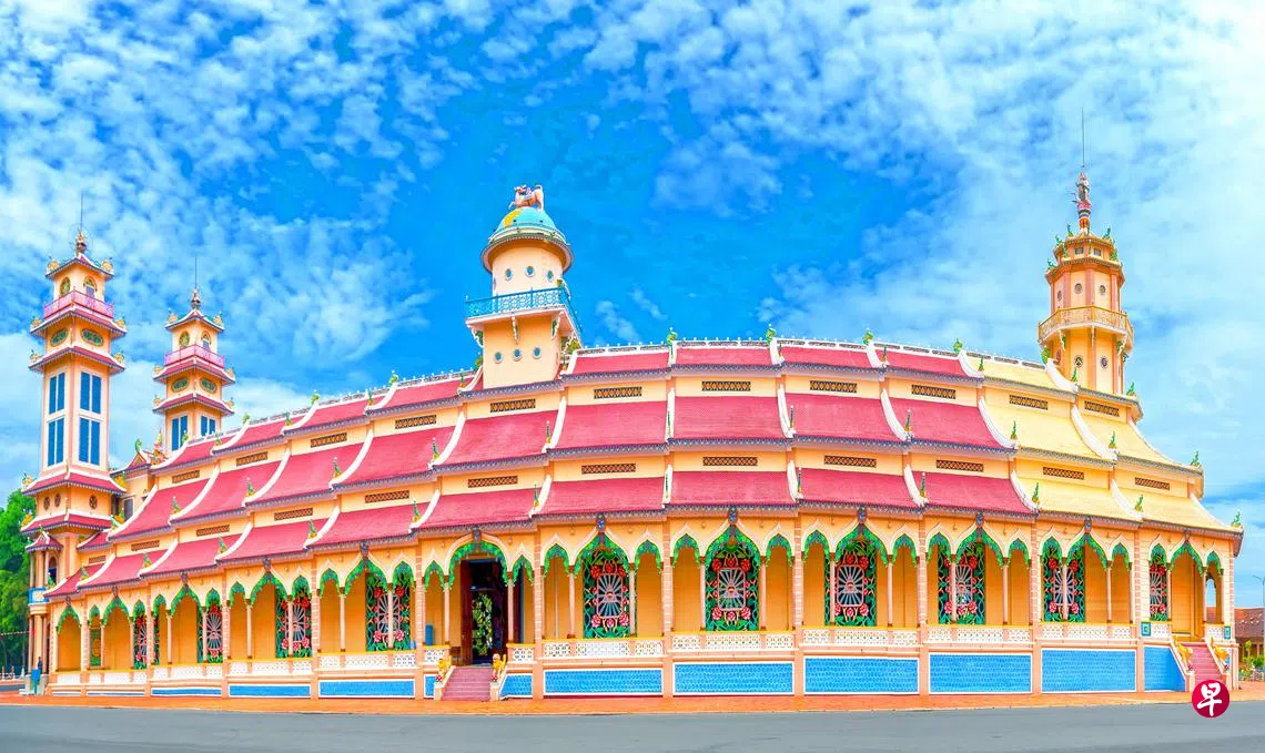 高台教寺庙位于越南南部的西宁省(Tây Ninh),也称西宁教廷,距离胡志明市大约两小时车程。寺庙外观有希腊神庙的大柱长厅,有哥特教堂的尖塔,有中国佛教的山门楼阁,有伊斯兰教的圆顶拱廊,让人看了惊异。根据历史记载,当年建造这座规模宏大的寺庙并没有委托任何建筑师画建筑图,也没有向越南政府申请任何资源,完全基于工人的努力和双手,从1931年动工直到1955年才落成。