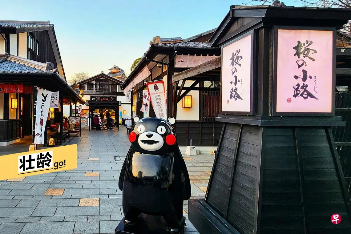 熊本城旁边的樱之马场城彩苑(Sakuranobaba Josaien)建筑仿江户时代古风,让人有回到历史的感觉。这里有二十多家餐馆和纪念品店,提供美味可口的熊本拉面、太平燕(一种熊本的面食料理)、芥末莲藕和串烧圆糯米球等代表熊本县的传统美食。