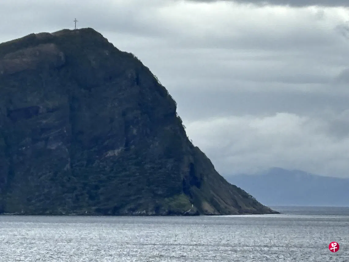 2024年1月30日早上9点,我从和平船14楼餐厅,看到岸边山崖顶端有座十字架,立刻意识到我们乘坐的游轮“太平洋世界”,已从太平洋驶入麦哲伦海峡。这条570公里长的历史航道,瞬间从中学课本里跳了出来,成为一条能承载船只的实体峡道。