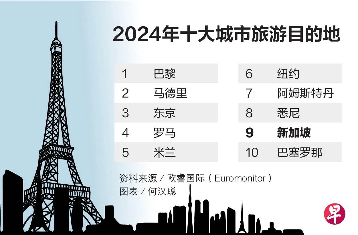 2024年全球百大城市旅行目的地年度报告出炉,新加坡首次入选前十,排名第九。这是全球市场调查机构欧睿国际(Euromonitor)在12月5日发布的全球百大城市旅游目的地指数报告,公布在旅游、可持续和经济表现等方面,表现最优秀的城市。