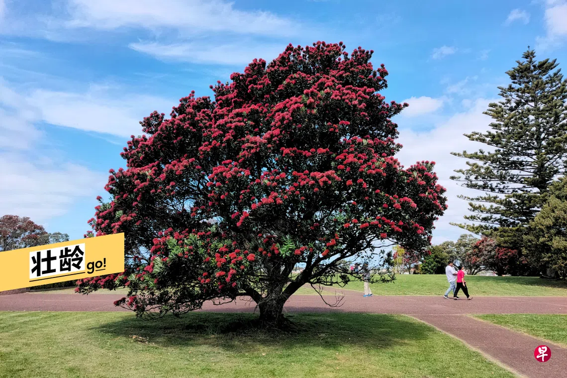 从奥克兰启程,正值夏天,这里的花花树树把新西兰装扮成美丽的天地。首先映入眼帘的是新西兰圣诞树(Pohutukawa)。这种树属于大乔木,树干粗大,树身很高,树冠覆盖的面积范围很广,浓密的枝叶给新西兰炎热的夏天带来无限的阴凉。开花时,整个树冠都被红色的花朵覆盖,十分耀眼夺目,美丽迷人,公园、街道、住家庭院,到处可见。