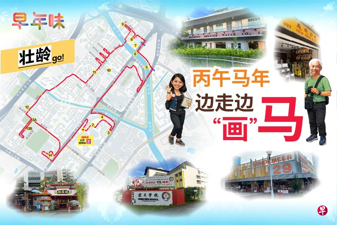 记者突发奇想后,打开谷歌地图,找来文史工作者李国梁反复推敲路线。最终决定从文庆地铁站启程,串联巴刹、学校、庙宇、工厂与河流共14个点,在熟悉却未必细看的社区之间,策划一场“画马”的行走。