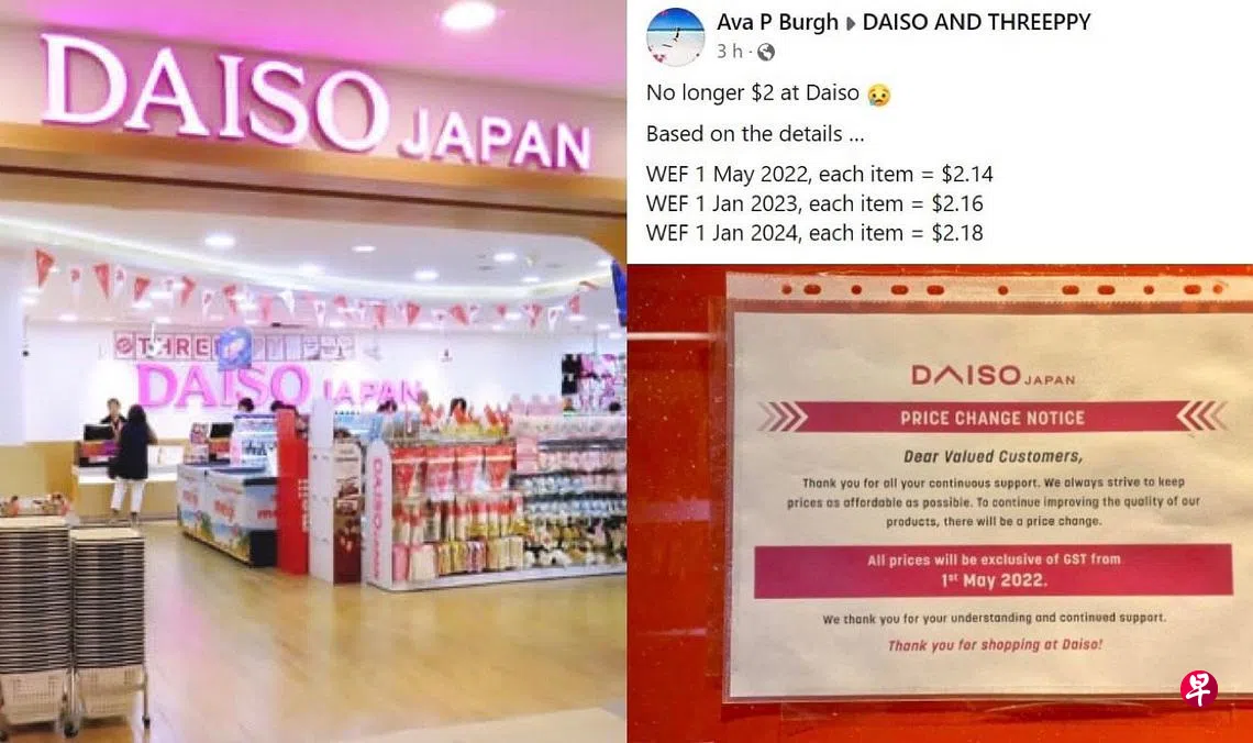 今早有眼尖的网民在面簿群组里发了张Daiso贴在门店的告示图,公开声明从5月1日起,所有门店销售的物品一律不包含消费税(GST)。