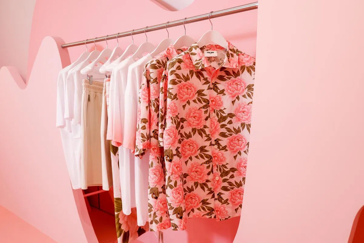 快闪店是为了宣传品牌新夏日服装系列“SPARKLES - MUDANCE”而设,其灵感来自于牡丹花与舞蹈的结合,因此系列以跳动的牡丹图案为主,价格介于160元至200元不等。