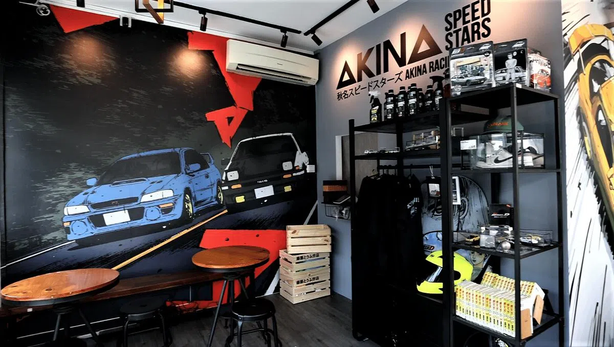 “他看到这里的时候非常兴奋,脑中瞬间闪现许多想法,不断地跟我说这间店面的布局长得很像《头文字D》里的漫画场景。跟我说车要这样停放拍照,就会跟漫画里的场景一模一样。他甚至兴奋到整晚没睡。” 陈灿威是名汽车发烧友,酷爱汽车,年轻时也曾沉迷于《头文字D》,便受到启发,于是开设该概念店。