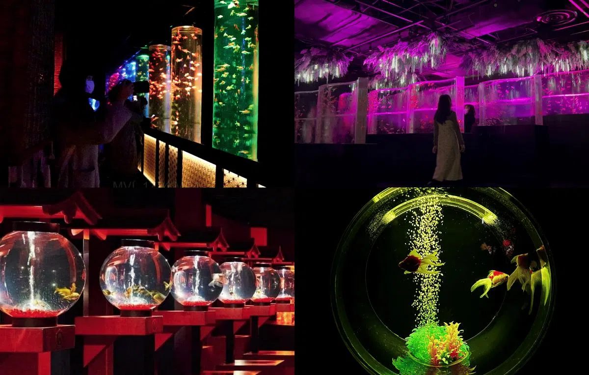 名为“Art Aquarium Ginza”的金鱼艺术展主要分为7个展区,围绕着“百华缭乱,进化的艺术”为主题,现场共有超过12个巨型装置,里面装着上万只活生生的观赏金鱼。