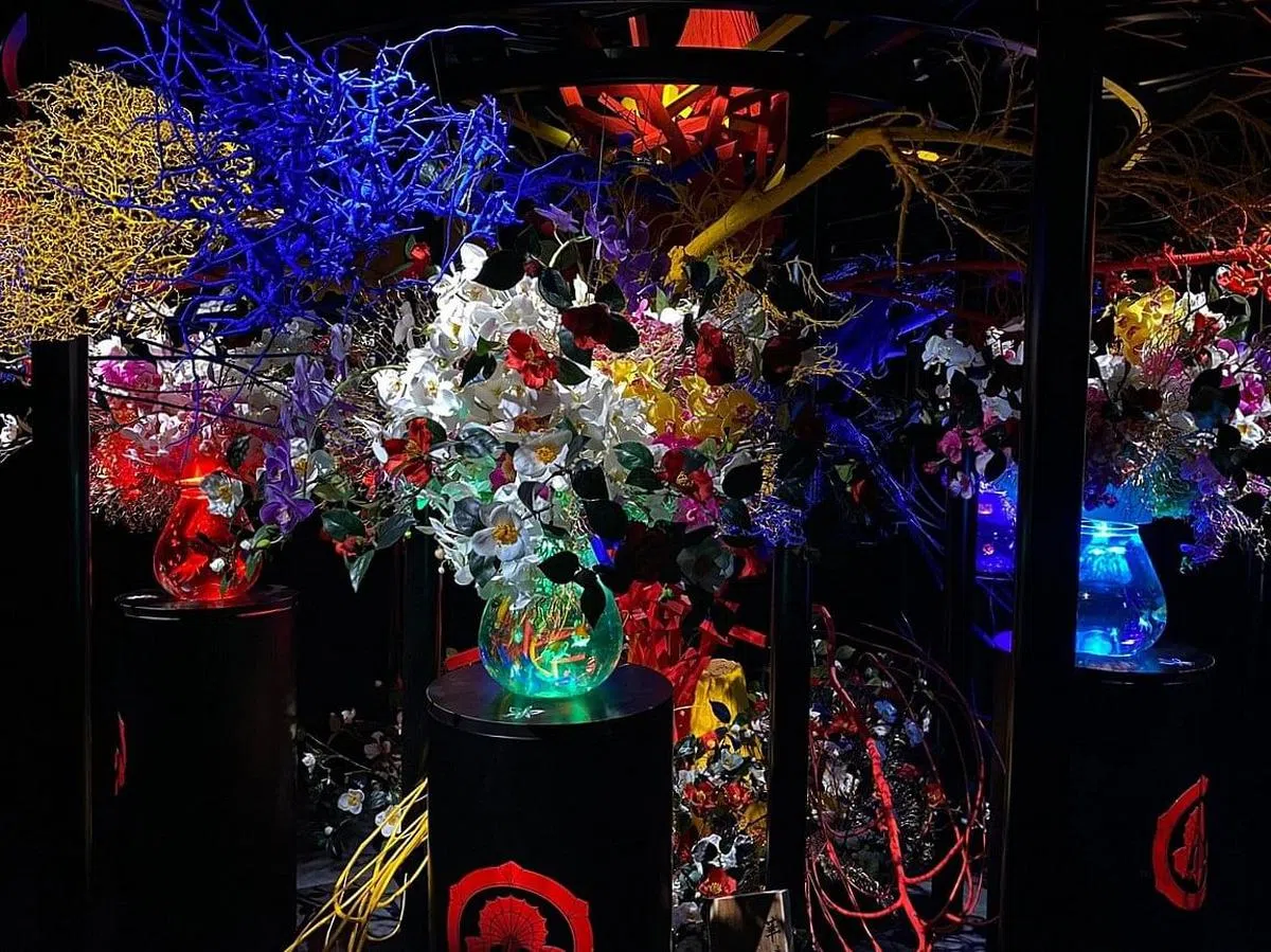 此外该展览更是不定期与艺术家合作,首位邀请的是世界级花艺大师假屋崎省吾(Shogo Kariyazaki)。他用五彩斑斓鲜艳的花卉,结合金鱼为主题,推出宛如插花般的艺术装置。