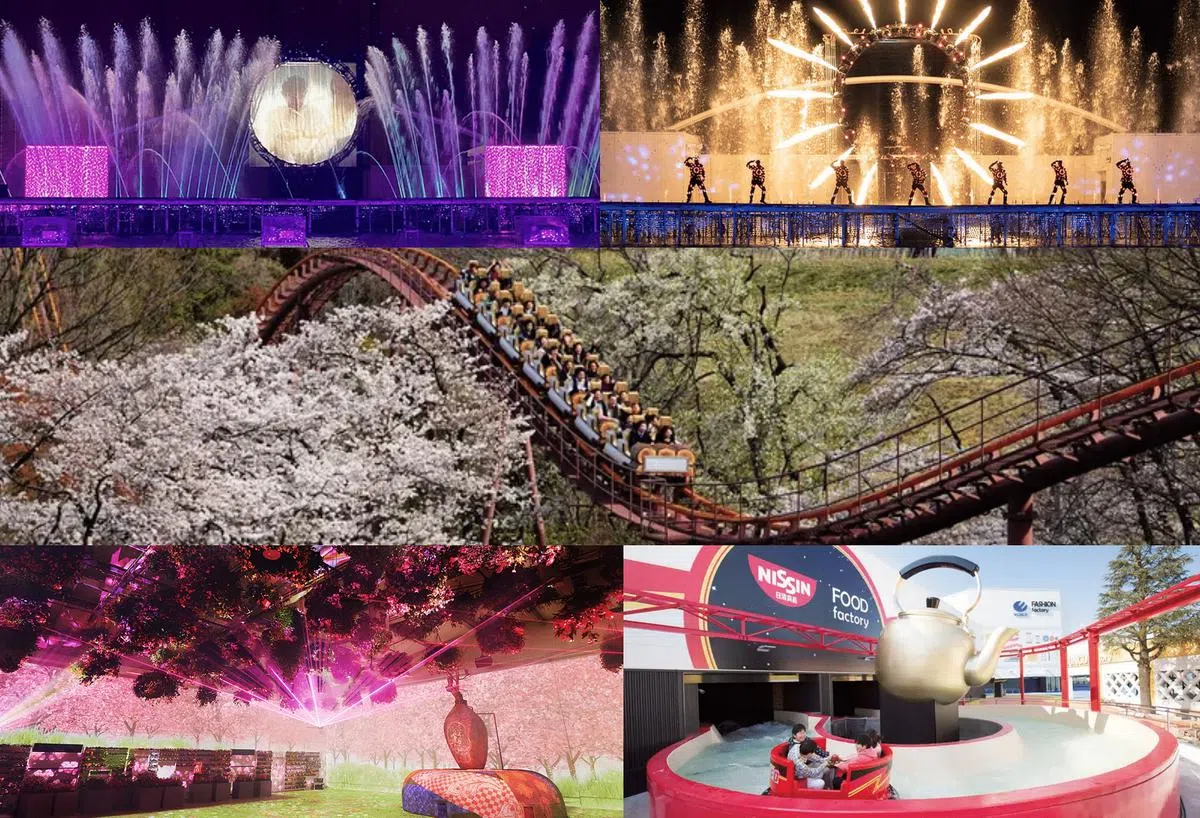园内除了有如云霄飞车、旋转木马等40项游戏设施之外,还设有音乐喷泉、舞台表演、花卉与数位艺术融合的温室植物园“HANA·BIYORI”、UFO客制拉面馆等景区,供全家大小逛上一天。玩乐之余,还能在美食档品尝各类美食,并在商店购买手信及《名侦探柯南》、《咒术回战》等动漫的原创周边商品。