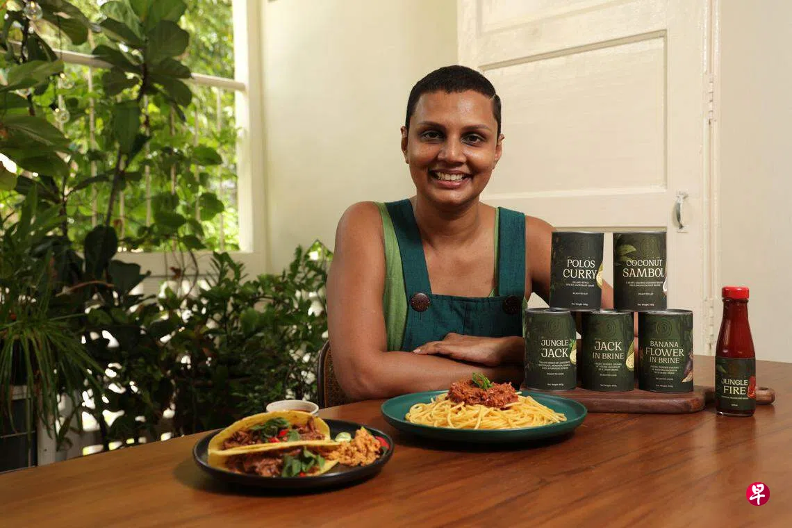 Jungle Kitchen是本地最新的替代蛋白品牌之一,今年4月在新加坡亚洲国际食品与酒店展第一次亮相,另一名创办人是Mukeeta Manukulasuriya。苏雷卡说:“最近一次办活动,很多人都被我们展示的新鲜菠萝蜜吸引,说想知道那是什么。我们就住在这里,却有这么多人不认得这个生长在我们周围的水果。”