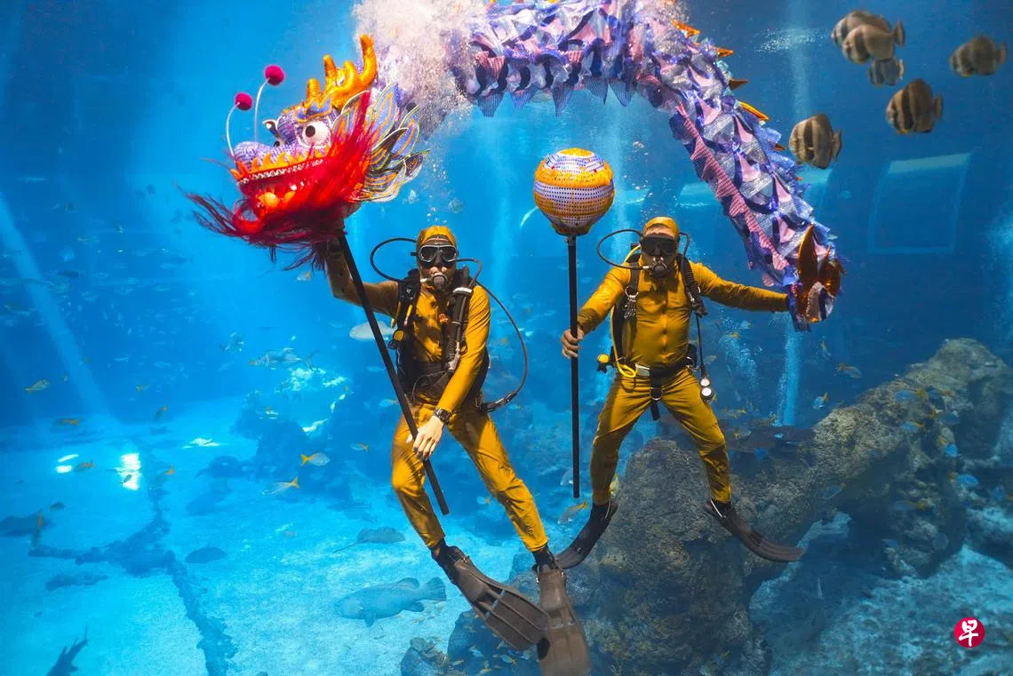 在S.E.A.海洋馆,游客将体验到一场深海与春节的完美融合。深海奥秘生态区将上演备受期待的水下舞龙表演,为观众带来视觉与节庆的双重享受。海洋馆的节庆装饰将春节的欢乐与海洋生物的奇观融为一体,为游客创造一个别样的海底世界。