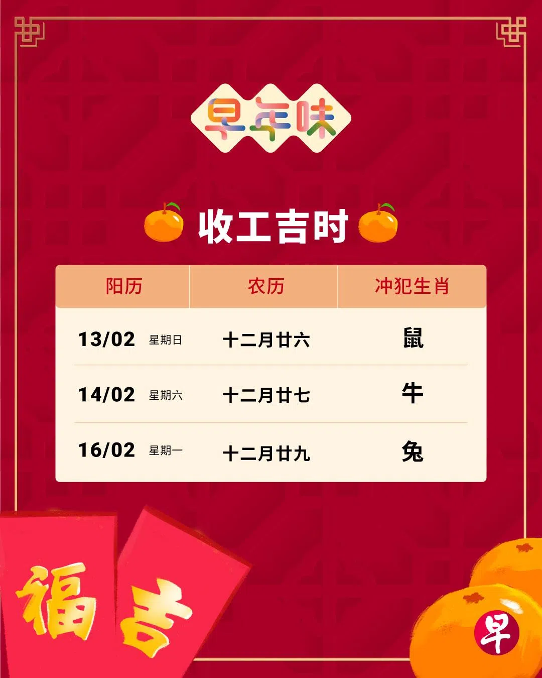 农历新年即将到来,除了来年的生肖运势,工作的朋友对于收工、兴工和开工吉时也非常关注。