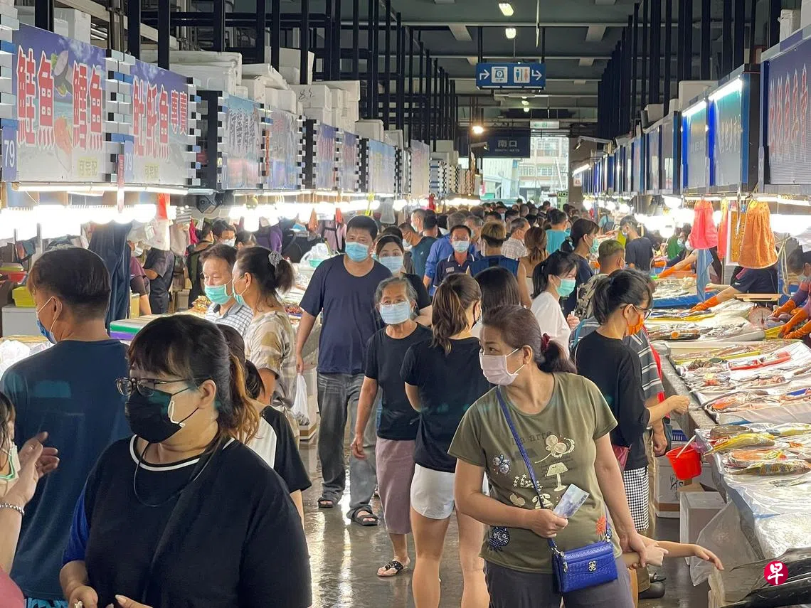 高雄观光鱼市场人潮汹涌订户赠阅文章高雄市梓官区蚵仔寮观光鱼市场内外,昨天下午4时许突然涌入购买渔货民众,市场内人与人的距离不到一公尺。现场人数多到近乎解封状态,虽然人人有戴口罩,还是担心群聚有风险。梓官区渔会表示,现场人数管控一小时开放100人入场。(香港中通社)高雄上一篇拒签“一中承诺书” 台驻港办事处七人员返台下一篇早说