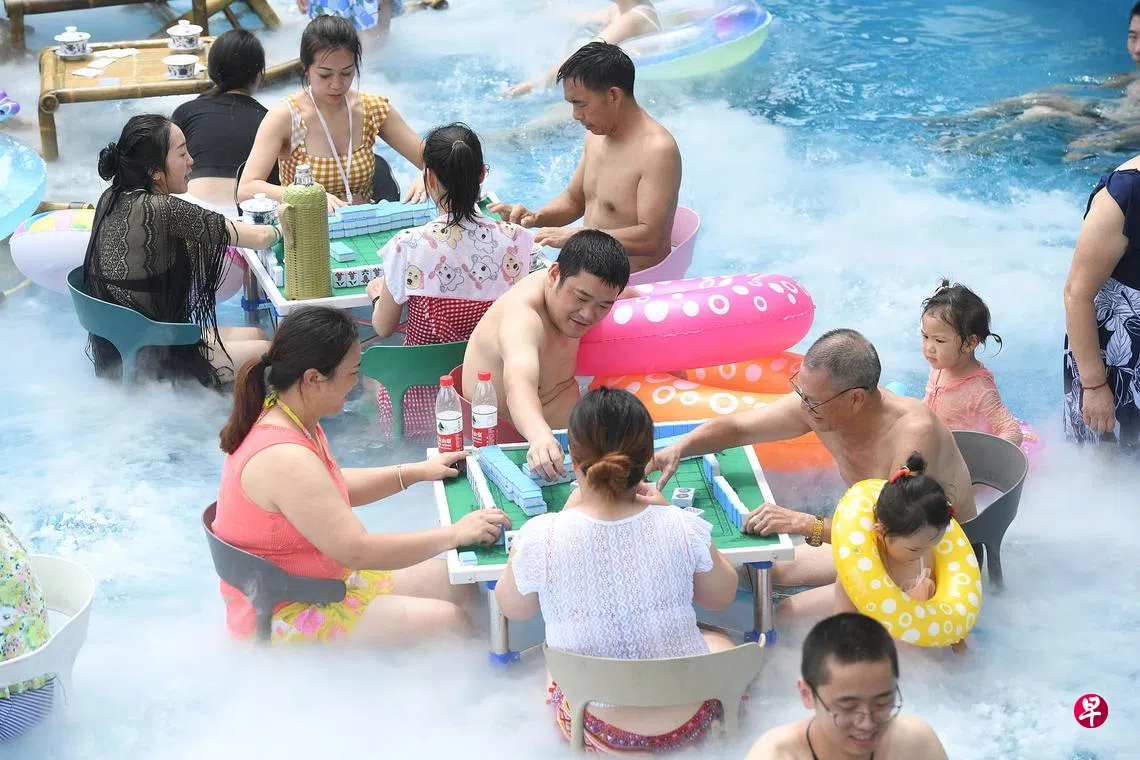 泳池打麻将消暑订户赠阅文章中国全国多地从昨天起正式“入伏”,迎来炎炎夏日。图为游客们10日在重庆一水上乐园的泳池中打麻将、喝茶聊天消消暑。(中通社)中国重庆上一篇疫情虽趋缓 台冠病死亡率位居全球第八下一篇实在话:新青年及其周边你懂吗?