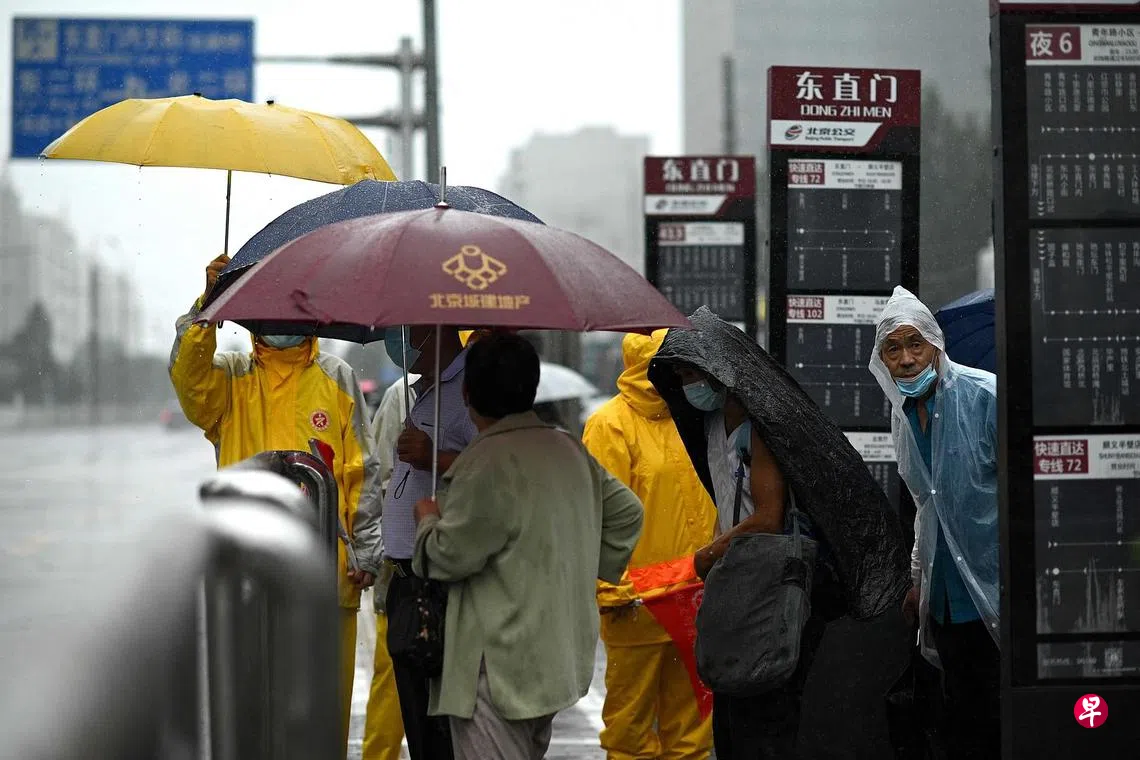 北京市防汛指挥部前天就提示市民减少出行,避让积水路段,远离河道和危险山区;并建议市政府不涉及城市运行的机关和企事业单位采取弹性上班方式或错峰上下班。昨天仍须要出门的北京民众,则是伞、雨衣、拖鞋、短裤、塑料袋……“全副武装”出行。