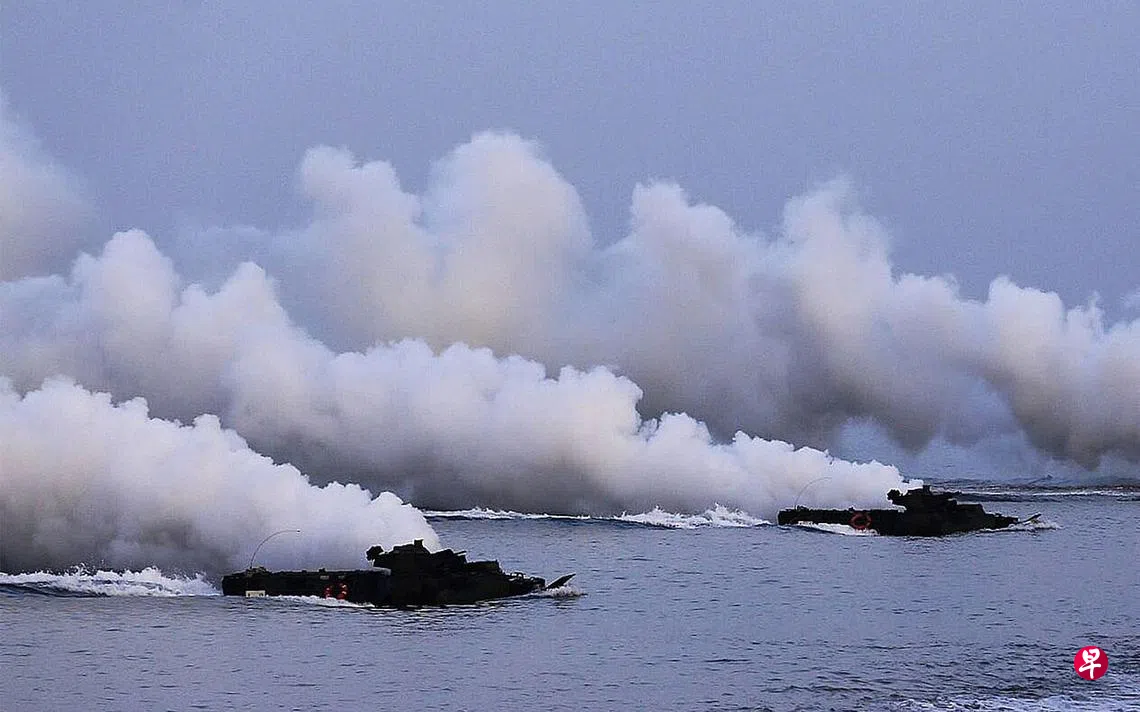 据央视报道,上述演练上周五(9日)在中国某海域进行。训练中使用的05型两栖突击车高速且火力强大,曾被中国媒体称为“夺岛利器”,可在抢滩登岛作战任务中担任“踹门”角色。