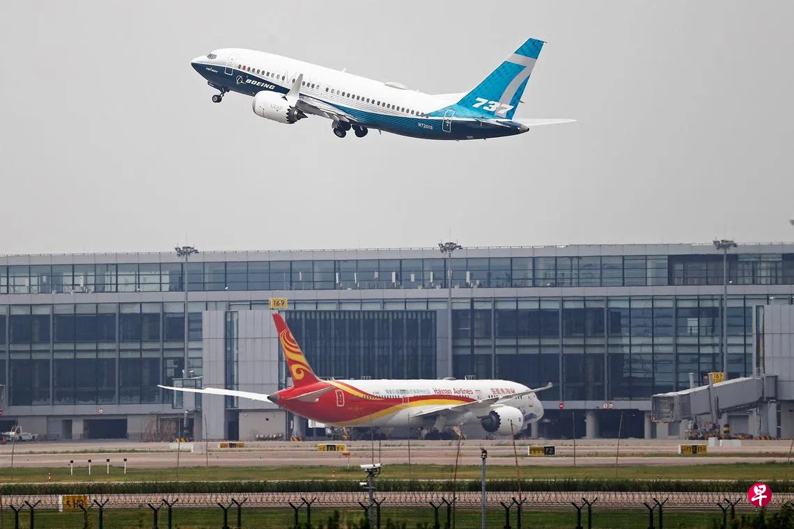 美国飞机制造商波音公司的一架737MAX系列飞机,昨天在上海浦东国际机场起飞进行试飞,没有列出目的地,朝东南方飞行。中国航空博客上的照片显示,它后来降落在南方约150公里的舟山普陀山机场。波音公司在舟山有一座737 MAX的工厂,负责安装内饰和喷涂机身图案。波音737 MAX测试飞机上周离开西雅图,在檀香山和关岛加油后于8月7日抵达上海。波音737 MAX飞机在中国仍处于停飞状态,华盛顿和北京之间的贸易紧张关系已经导致销售中断多年。(中新社)