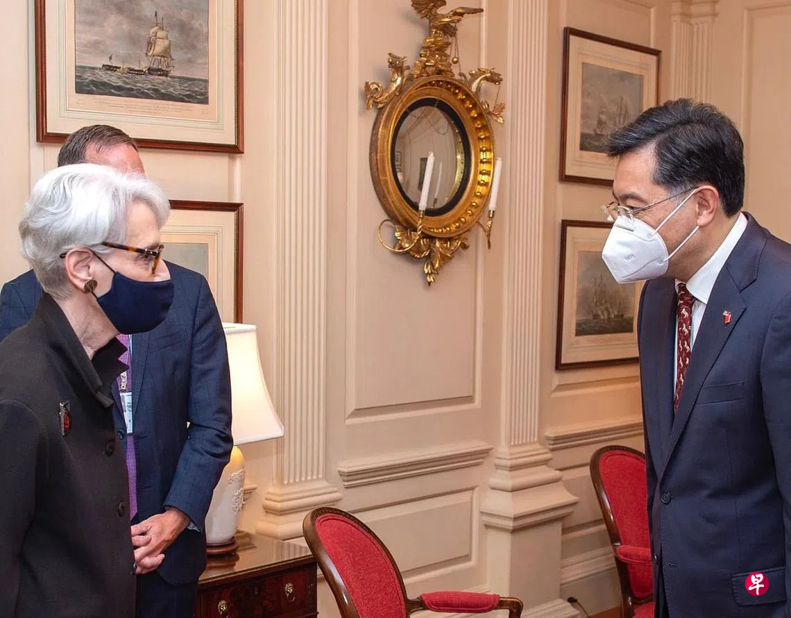 谢尔曼上个月26日在天津同中国副外长谢锋举行会谈,并与中国国务委员兼外长王毅会面。这是中美高官自3月在阿拉斯加激烈交锋后的再一次会面。秦刚则在天津会谈结束两日后飞抵华盛顿,填补前任驻美大使崔天凯于6月23日卸任后一直悬空的位置。