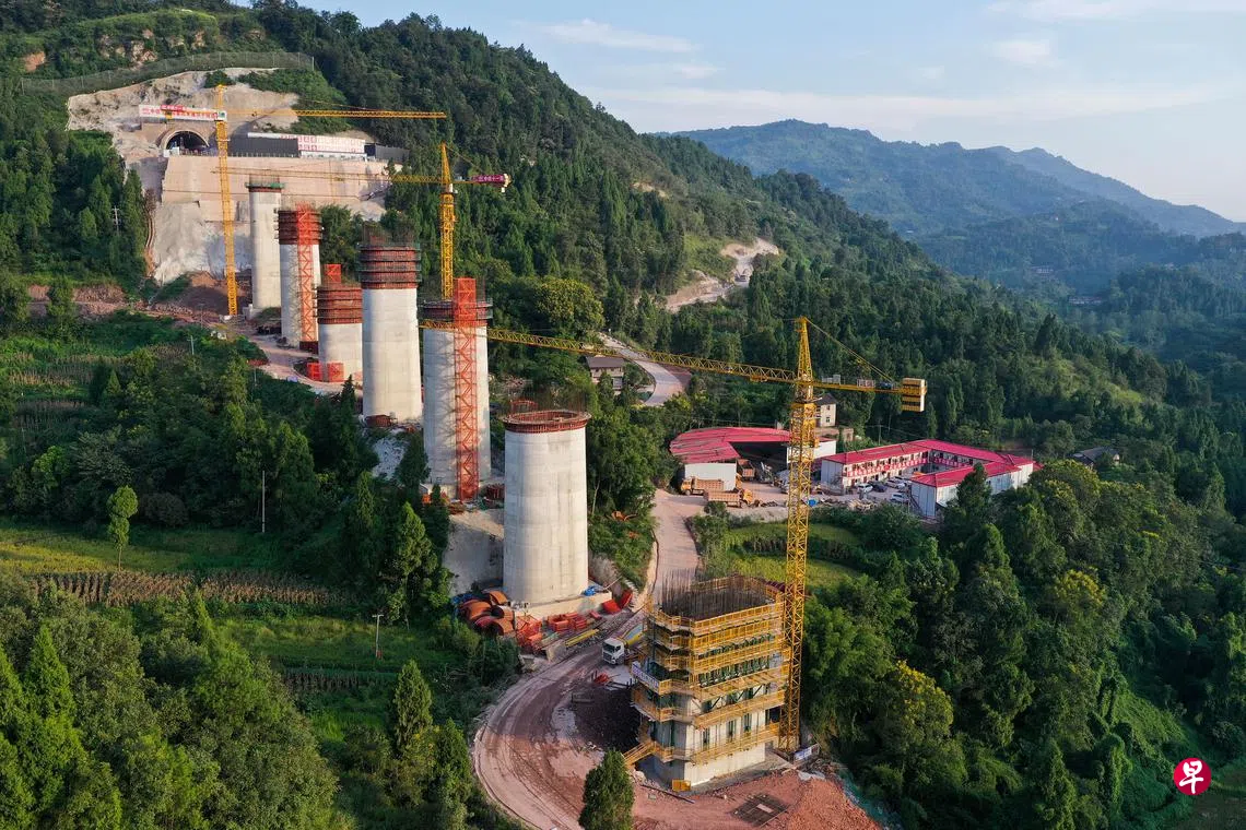 衔接重庆至湖南的渝湘高铁重庆至黔江段正加紧施工。渝湘高铁是中国中长期铁路网规划的“八纵八横”高铁网中,厦渝通道的重要组成部分,重庆至黔江段线路全长约269.5公里,设计行车速度每小时350公里。图片是于9月2日拍摄的重庆至黔江段站前4标麦土湾特大桥施工作业现场。(新华社)