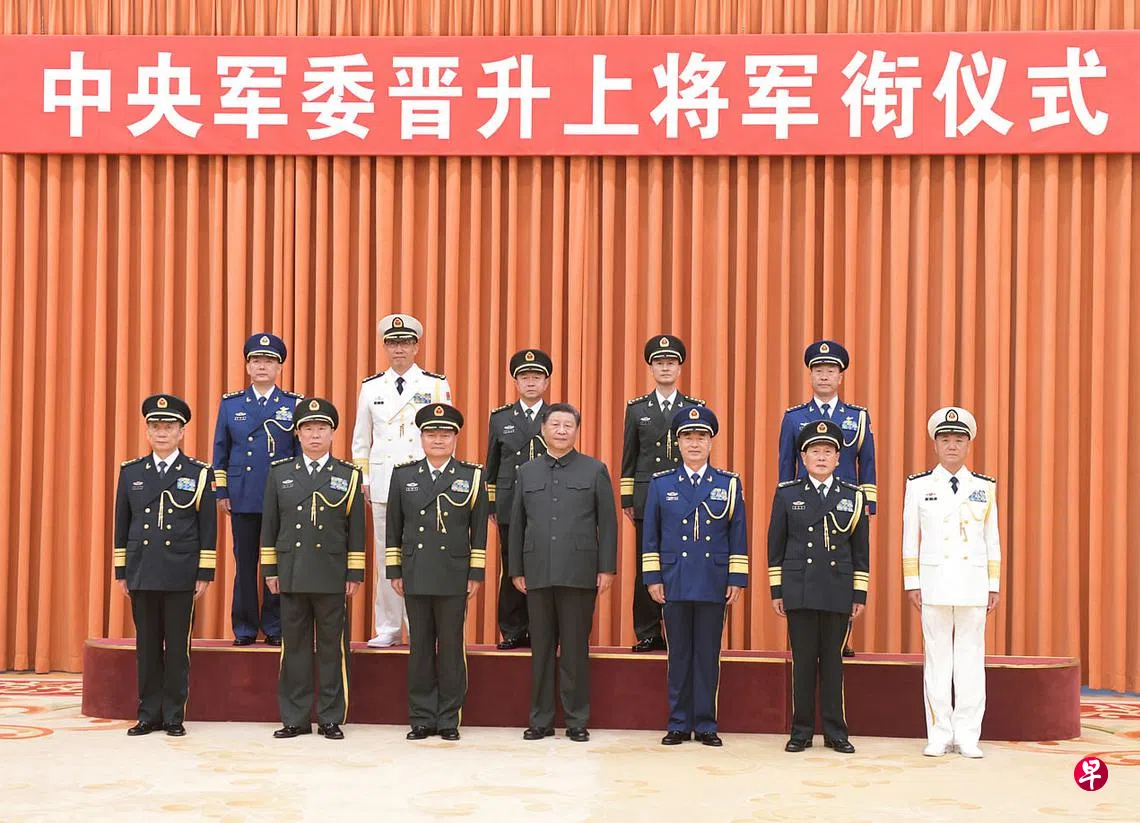据央视报道,中央军委晋升上将军衔仪式前天在北京八一大楼隆重举行,中央军委主席习近平向五名晋升上将军衔的军官颁发命令状。这五名上将是:西部战区司令员汪海江、中部战区司令员林向阳、海军司令员董军、空军司令员常丁求、国防大学校长许学强。