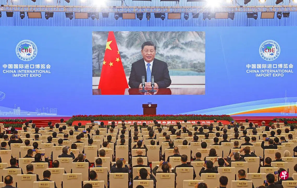 习近平宣示中国扩大高水平开放决心不变订户赠阅文章中国国家主席习近平昨晚以视频方式出席第四届中国国际进口博览会开幕式并发表题为《让开放的春风温暖世界》的主旨演讲。(中新社)陈婧 上海特派员jingchen@sph.com.sg中国国家主席习近平在第四届中国国际进口博览会开幕式上,宣示中国扩大高水平开放的决心不变,并承诺将继续同世界分享发展机遇,推动经济全球化朝更加开放、包容、普惠、平衡、共赢的方向发展。习近平进博会世界贸易组织全球化上一篇寒潮袭乌鲁木齐下一篇港人有望下月免隔离赴广东购买此文章