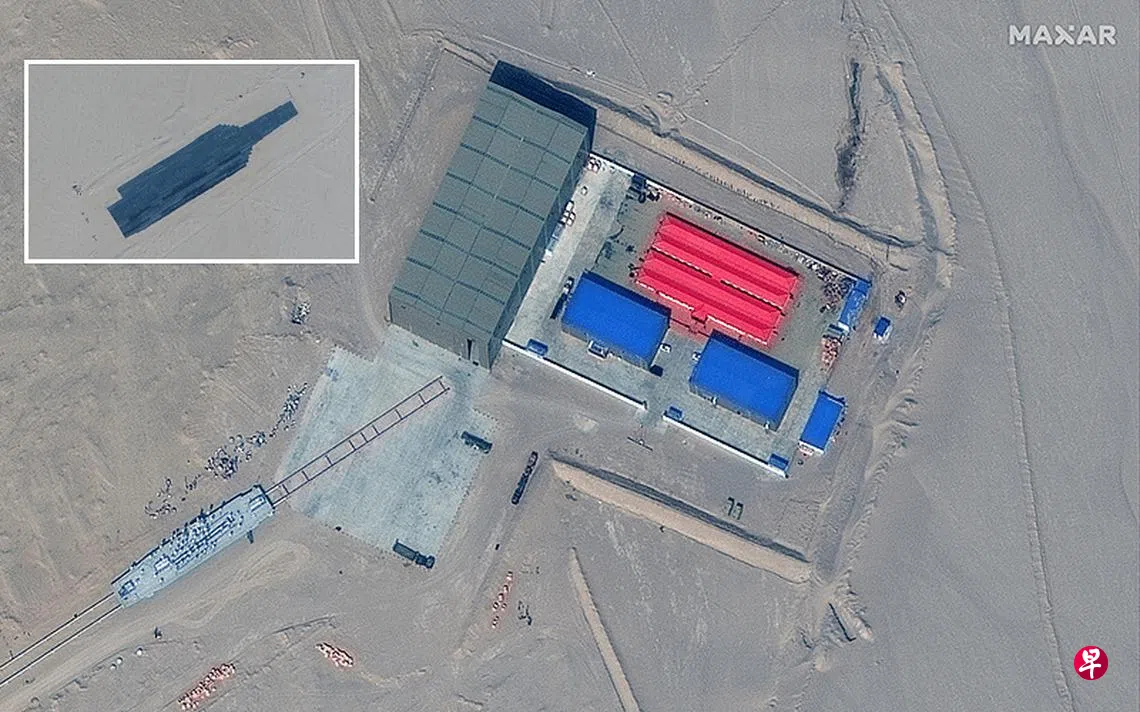 美国海军研究协会新闻(USNI News)前天引用美国太空技术公司马克西科技(Maxar Technologies)上月拍摄的卫星照片,显示中国军方在新疆西南的塔克拉玛干沙漠中新建的靶场,出现美国军舰的全尺寸模型,可能用作训练目标,包括一艘航母和至少两艘阿利·伯克级驱逐舰,均为航经台湾海峡的美国第七舰队舰型。