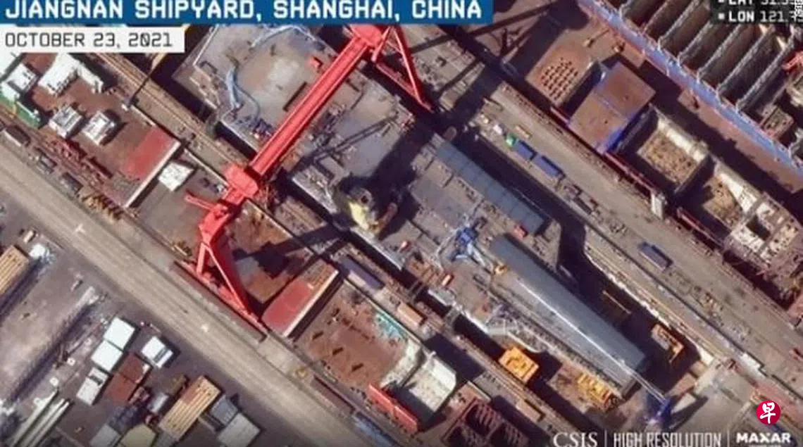 (华盛顿讯)美国智库战略与国际研究中心(CSIS)对最新卫星图片分析称,在上海江南造船厂建造中的中国最新航空母舰快要完工,最早可能于2022年2月下水。
