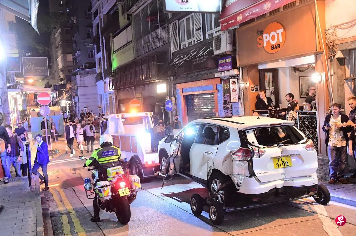 (香港讯)香港中环苏活区前晚发生轿车倒溜撞伤八名路人的严重车祸,其中两名女子情况危殆。肇事司机为一名44岁菲佣,警方调查后以涉嫌危险驾驶引致他人身体受严重伤害拘捕她。