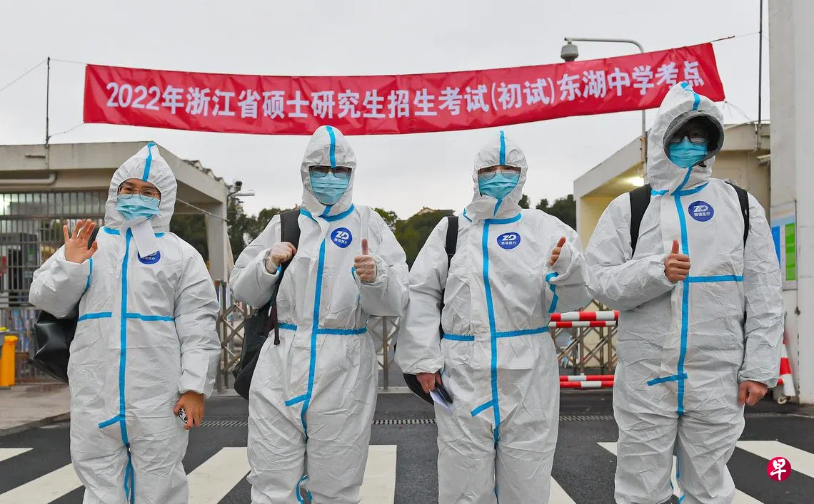 “全副武装”入考场订户赠阅文章中国全国硕士研究生招生考试在本月25日开考,浙江省绍兴市越城区皋埠街道冠病疫情管控区、封控区的多名密接、次密接考生穿防护服参加考试。图为即将进入考场的考生。(中新社)中国上一篇妇女产假增至半年 重庆鼓励生育为何反应不佳?下一篇中国日增158起本土病例 西安是重灾区