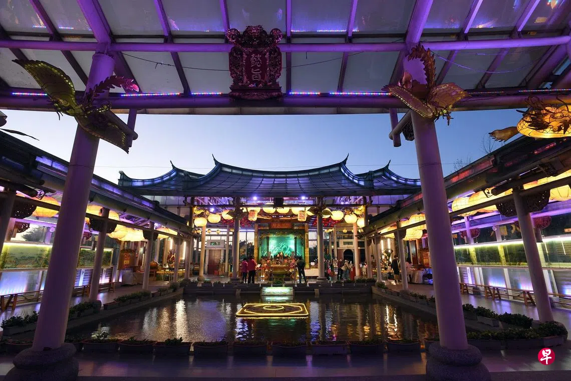 在彰化鹿港镇的靠海处,有一座全世界独一无二的玻璃妈祖庙——彰化护圣宫,由钢骨结构和玻璃外牆、屋顶构成,设有各种LED灯,结合电子科技与文化创意特质,展现高科技艺术。护圣宫日间光线明亮通透,夕照时分有种朦胧美感,夜晚点亮灯光之后映照在水面上,景象更是如梦似幻。这座妈祖庙看似摩登前卫,实际上外形是仿造同县市中知名的清朝古蹟鹿港天后宫,现代感中仍有古意。护圣宫在2007年动土兴建,2012年举办入火安座,虽然历史还不长,但结合了台湾玻璃产业的深厚技术和重要的沿海妈祖信仰,庙中处处融入了台湾独有的人文和自然风景,蕴含着相当丰富的意义。(香港中通社)