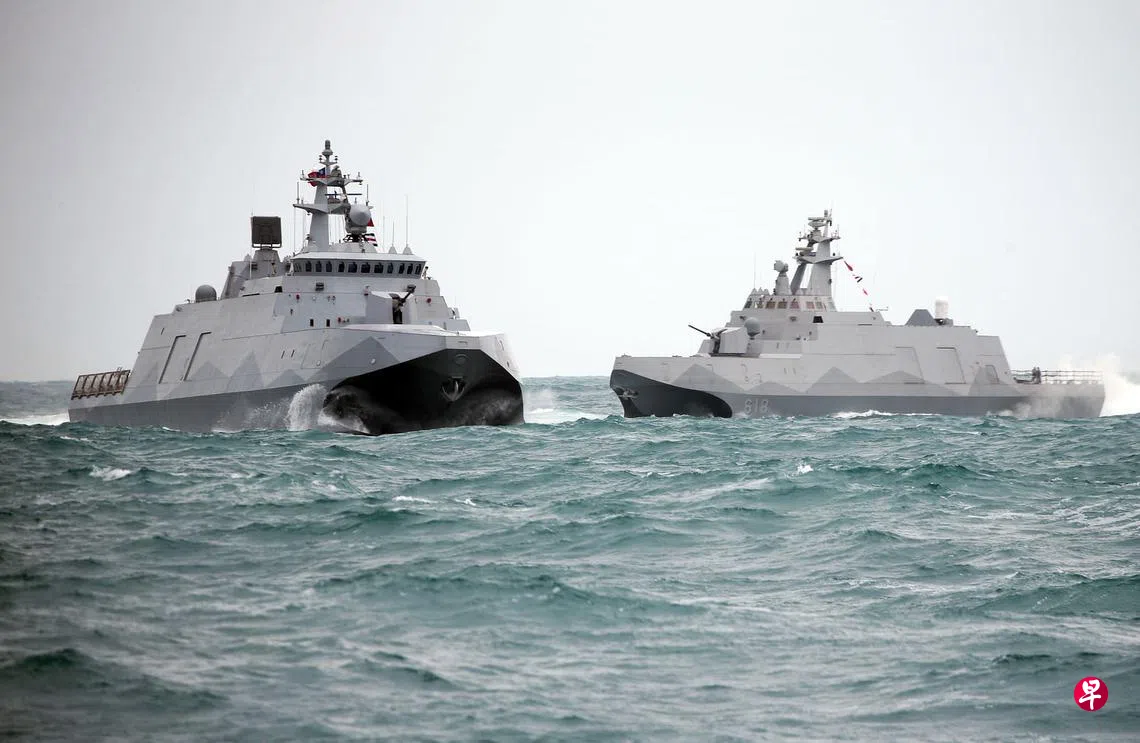 综合《中国时报》、中央社报道,台湾国防部海军司令部昨天邀媒体前往基隆威海营区,首度开放参观沱江级塔江军舰,舰上配备28枚各式导弹及弹舱首次曝光,并出海操演展现火力;同时,新型快速布雷艇内的布雷轨运作,也在昨天首次公开亮相。