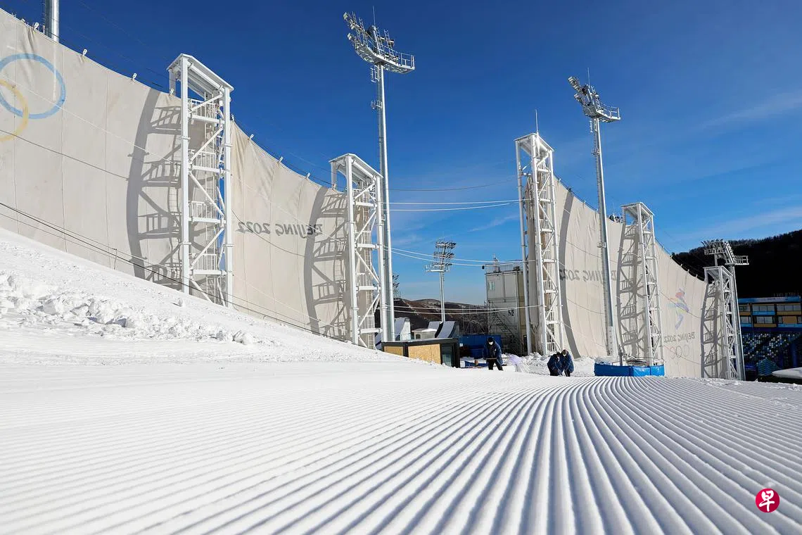 北京冬奥会张家口赛区云顶滑雪公园日前设置防风墙,可以有效地减小大风对运动员的干扰,保证赛事的正常运行。该防风墙由雪白色的网和塔组成,塔采用喷塑工艺,网加入抗紫外线材料,在各种环境下保持颜色不变,抗拉强度大,在零下30度力学性得到保证,且阻燃性好。在抗低温电力控制系统下防风网开收纳方便,系统可将运动空间内超过每秒10米的风速降至每秒3.5米。图为工作人员昨天在张家口赛区云顶滑雪公园的防风墙旁平整雪道。(新华社)