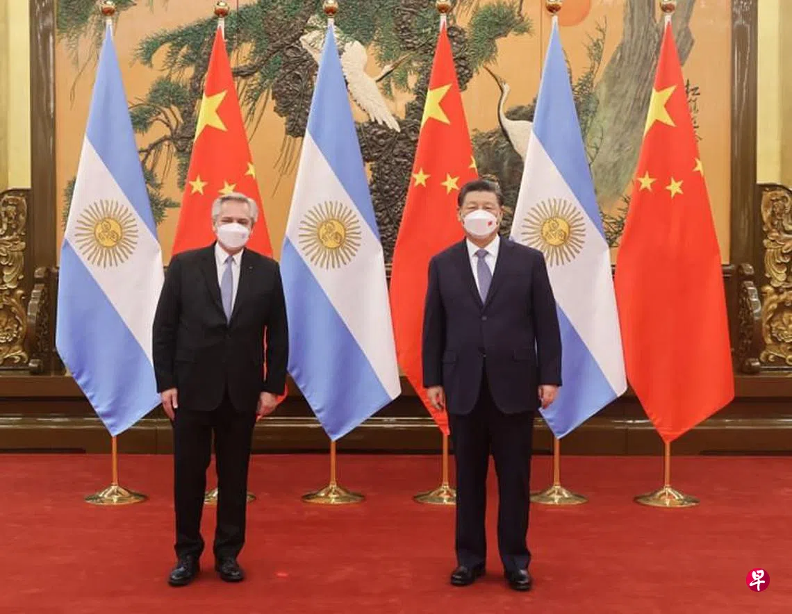 中国与阿根廷国家元首前天在北京会晤,双方发表联合声明宣布签署共同推进“一带一路”建设的谅解备忘录,同时深化两国全面战略伙伴关系,意味着南美洲大国获纳入中国基建倡议版图。阿根廷并称将从中国获得约100亿美元(约135亿新元)用于一带一路项目。